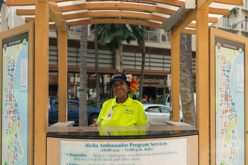 Our Aloha Hospitality Ambassadors share the spirit of Aloha to all by being staged throughout the district. Look for them with their bright neon shirts, large smiles, and friendly personalities. They can provide directions, recommend a place to explore, or answer any questions you may have.